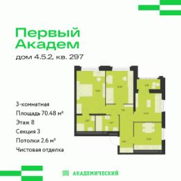 Проект от основателя и главного застройщика Академического района.Расположение и инфраструктура:Квартал ''Первый Академ'' включает восемь блоков домов, две школы и четыре детских сада в периметре улиц Краснолесья А. Мехренцева Ак. Вонсовского Очеретина.Сроки строительства квартала: 1 квартал 2023 3 квартал 2028.В числе особых преимуществ близость к Юго-западному лесопарку и ТРЦ ''Академический'': магазины, кафе, парк развлечений, кинотеатр, фитнесс-центр с бассейном. Развитая транспортная развязка, включающая трамвайную линию.На территории квартала планируется: видеонаблюдение 24/7, подземный паркинг с доступом на лифте, кладовые, велодорожки, многоуровневое озеленение, workout зоны для уличного фитнеса, детские игровые комплексы в эко-стиле. На первых этажах будут располагаться торговые галереи.