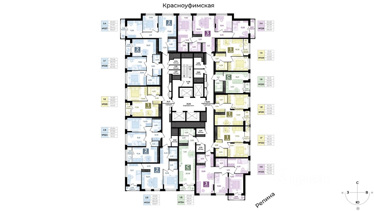 Дом 2 Ввод в эксплуатацию первая половина 2026 г. Класс дома: комфорт. Отделка: чистовая. Архитектурное решение: графитовые композитные панели в сочетании со светлой штукатуркой. Вид из окон: на Верх-Исетский пруд, центр города и лесной массив. ЖК Repin Towers три башни разной этажности объединённые общим двором. Комплекс расположен на пересечение улиц Репина Заводская. На территории запроектирован детский сад, до школы около 100 метров, пересекать проезжую часть не придется. В шаговой доступности находятся: школы ( 41, 57, 168, 121, Гимназия 202 ''Менталитет'') детские сады (7, 67, 348, 510) остановки общественного транспорта (ул. Репина, Начдива Васильева, Металлургов) торговые центры (Мега, Радуга-парк) парк отдыха Радуга набережная Верх-Исетского пруда с яхт-клубом ''Коматек'' Современная архитектура. Минимализм и круглые окна — особенность, выделяющая дом среди окружающей застройки. Двор без машин. Игровые площадки для детей разных возрастов, места отдыха и занятий спортом для взрослых не соседствуют с парковкой. Релакс-зона. Шезлонги и зонтики, поворотные кресла и паровой камин для спокойного отдыха. Парк во дворе. Многоуровневое озеленение и система туманообразования. Три уровня безопасности. Контроль доступа по карте жителя, эффективная система видеонаблюдения, консьерж-сервис. Дизайнерские холлы. Парадный холл с остеклением в пол, гостевыми санузлами и зонами ожидания. Технический холл. Для разгрузки строительных материалов, мебели и крупногабаритных вещей предусмотрен отдельный технический холл. В нем расположен грузовой лифт и санузел для мытья лап животным, а также колес велосипедов и колясок. Сервисная компания от застройщика. Обслуживанием дома будет заниматься профессиональная команда. Строительные и технические преимущества. Индивидуальный тепловой пункт: снижает затраты на отопление. Система очистки улучшит качество воды в доме. Пятикамерные окна задержат шумы и холод. Клапан вентиляции позволит проветрить комнату, не устраивая сквозняк. Горизонтальная разводка отопления: трубы спрятаны в полу. Счетчики с телеметрией. Отдельный счетчик на отопление у каждой квартиры. Отведение конденсата для кондиционеров. Высокий уровень шумоизоляции у стены квартир. Бесшумные, скоростные лифты. Реализация строящегося объекта осуществляется от застройщика по договору участия в долевом строительстве в соответствии с ФЗ-214 ''Об участии в долевом строительстве'', застройщик ООО ''Специализированный Застройщик Репина''. Варианты оплаты: ипотека, индивидуальные условия рассрочки, trade in, материнский и жилищные сертификаты, подробности в отделе продаж.