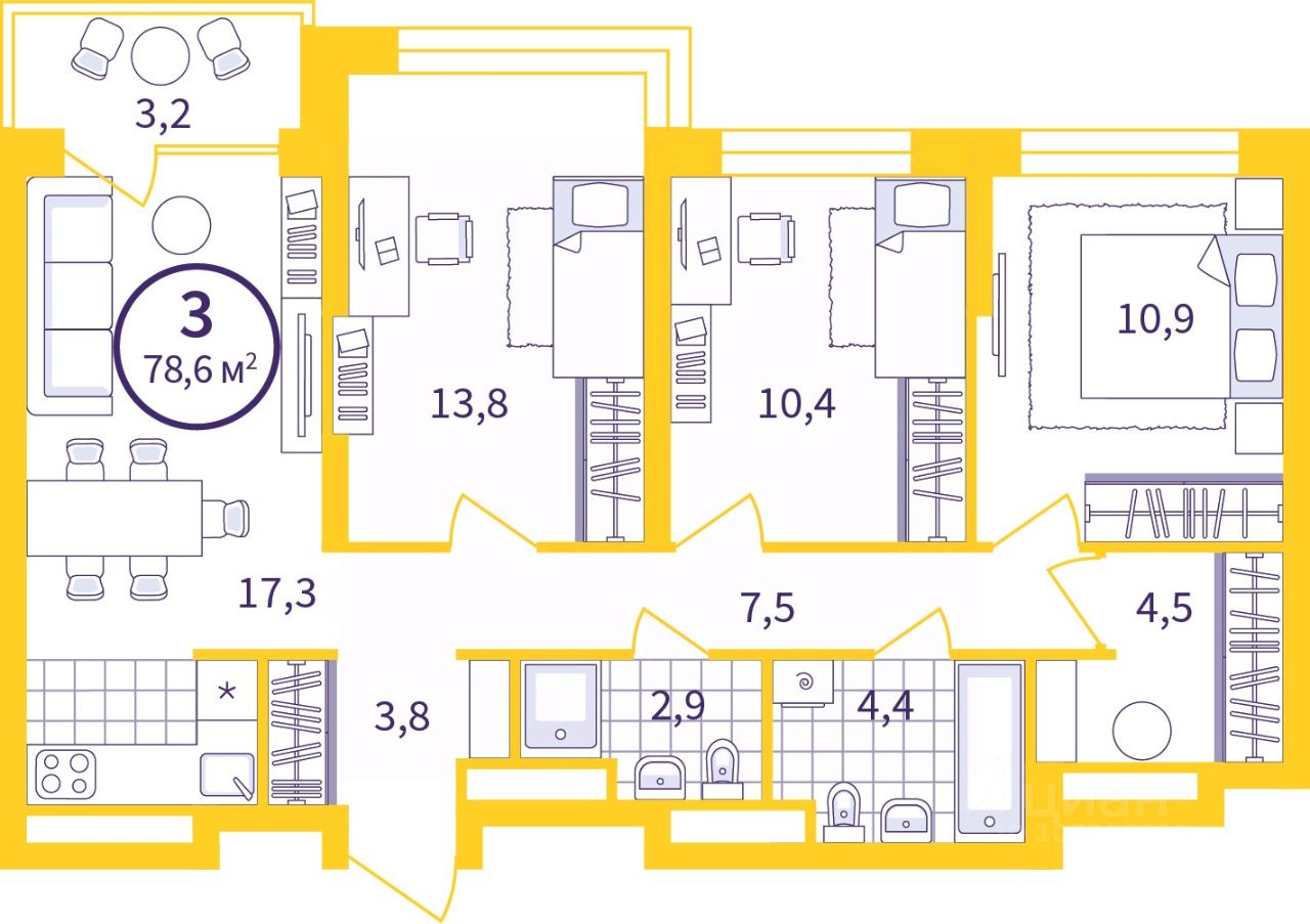 Трехкомнатные