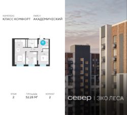 Продаётся квартира площадью 52.28 м2 в жилом комплексе ''Эхо леса''.Квартира находится на 2 этаже, жилая площадь квартиры 19.67 м2, площадь просторной кухни — м2. Среди особенностей планировки — изолированные комнаты с окнами на одну сторону, 1 совмещённый санузел. Срок сдачи — I кв. 2028Жилой комплекс ''Эхо леса'' — это: - дом в эко-стиле - двор с выходом в лесопарк - лаконичная архитектура - развитая инфраструктура вокруг квартала Инфраструктура В окружении проекта — вся необходимая инфраструктура: детские сады, школы, спортивный комплекс, продуктовые магазины, аптеки, кофейни, рестораны и салоны красоты. Благоустройство Концепция двора-парка продолжает тему леса. Ландшафт с продуманным всесезонным озеленением дополняют акценты: сухой ручей из камней, столы и навесы из натурального дерева, эко-тропы, фонтан и променад. Для взрослых предусмотрены пешеходные и велодорожки, для детей — игровые площадки для разных возрастов. Архитектура Переменная высота секций создаёт выразительный архитектурный облик. На фасадах — игра контрастных, при этом природных оттенков. Динамики зданию придают текстуры материалов: фактурной штукатурки и клинкерного кирпича. Лобби Интерьер в холле продолжает концепцию квартала и выполнен в эко стиле. В отделке используются элементы природных материалов с изображениями листвы и деревьев. Паркинг Тёплый подземный паркинг организован как единое пространство с собственным дизайном. Кладовые Индивидуальные помещения на техническом этаже — способ сохранить пространство в квартире. Попасть в кладовые можно на лифте. Планировки В продуманных планировках выделены тихие и шумные зоны. Приватные спальни и кабинеты спрятаны от маршрутов домашнего движения, а кухни-гостиные с барной стойкой вместо стены — всегда готовы к семейным праздникам. Из окон квартир открываются живописные виды на лес.