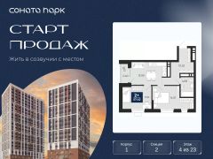 Продается 2-комн. квартира от застройщика в ЖК ''Соната Парк'' на 4 этаже. Общая площадь: 57.42 кв.м. Высота потолков 2.72 м. Дом монолитный, двухподъездный, переменной этажности, от 23 до 30 этажей. Квартира находится во 2-й секции высотой 23 этажа в корпусе 1. На этаже 11 квартир. В подъезде 1 пассажирский и 2 грузовых лифта. Окончание строительства - 4 квартал 2028 года. Оформление сделки по договору долевого участия. ЖК ''Соната Парк'' расположен в новом городском кластере ''Аллея Романтиков'' на Юго-Западе Екатеринбурга. Это район улиц Волгоградская Советских женщин Шаумяна Амудсена. Аллея объединяет разные кварталы застройщиков этой территории в единое целое. Чистые линии, интеллектуальная элегантность фасадов, игра света и тени это партитура, написанная архитектором. Благоустройство жилого комплекса это синтез искусства и природы. Поющие музыкальные инсталляции и поэтический променад. Оркестр растений: сирень, гортензии и яблони, чья цветущая палитра сменяется в течение года. Жизнь с готовой инфраструктурой Развитая транспортная доступность и социальная среда: уже сегодня рядом с домом детские сады, школы, парковые зоны, супермаркеты и рестораны в шаговой доступности. Технологии безопасности Для спокойствия жителей создана интеллектуальная система безопасности. Круглосуточный визуальный контроль обеспечивают профессиональная служба охраны, постоянно присутствующая на территории, и ситуационный центр. Система видеонаблюдения охватывает каждый уголок комплекса, исключая ''слепые'' зоны. Чёткое зонирование и навигация дополняют картину полного порядка. Дизайнерские подъезды Стилистика подъездов продолжает концепцию ''Соната Парка'', вдохновлённого музыкальной симфонией: сдержанный, но при этом впечатляющий дизайн соседствует с удобством и функциональностью. В подъезде вас встречает музыка, создавая особую атмосферу с первых секунд. Светлые и стильные входные группы с панорамным остеклением наполняют пространство светом, добавляя ему современной эстетики и ощущения безопасности. Аллея Романтиков Проект органично вписан в масштабный пешеходный кластер ''Аллея Романтиков'' — уникальное общегородское пространство, которое уже сегодня называют будущей альтернативой главным прогулочным улицам города. Это многофункциональный бульвар протяжённостью 1 километр, где всё создано для вдохновения и отдыха. Это ''зелёное сердце'' территории, которое объединит кварталы разных застройщиков в единую гармоничную среду. Здесь будут назначать свидания, гулять с семьёй, встречаться с друзьями и просто наслаждаться моментом. Линейка ремонтов Ремонт с капсульной меблировкой — когда всё готово к жизни. Мы соединили качественный ремонт и продуманную меблировку в одном флаконе. Словно ''с иголочки'', новая квартира готова и обставлена с чувством стиля и вкуса. Здесь будет всё до последней мелочи: от дивана до чайника, от освещения до текстиля. Переступите порог и моментально ощутите себя дома. Особенности: ВидеонаблюдениеПодземный 2
