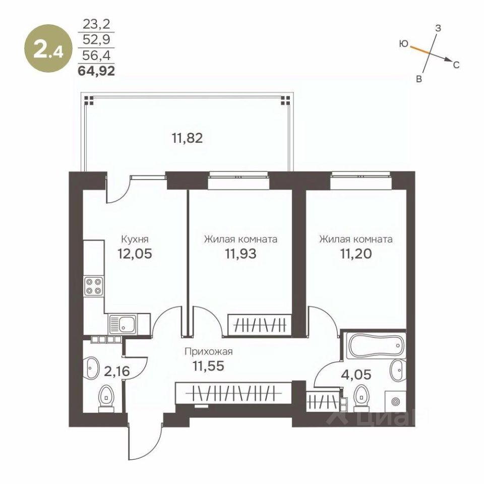 64 м² · Этаж 13 из 25
