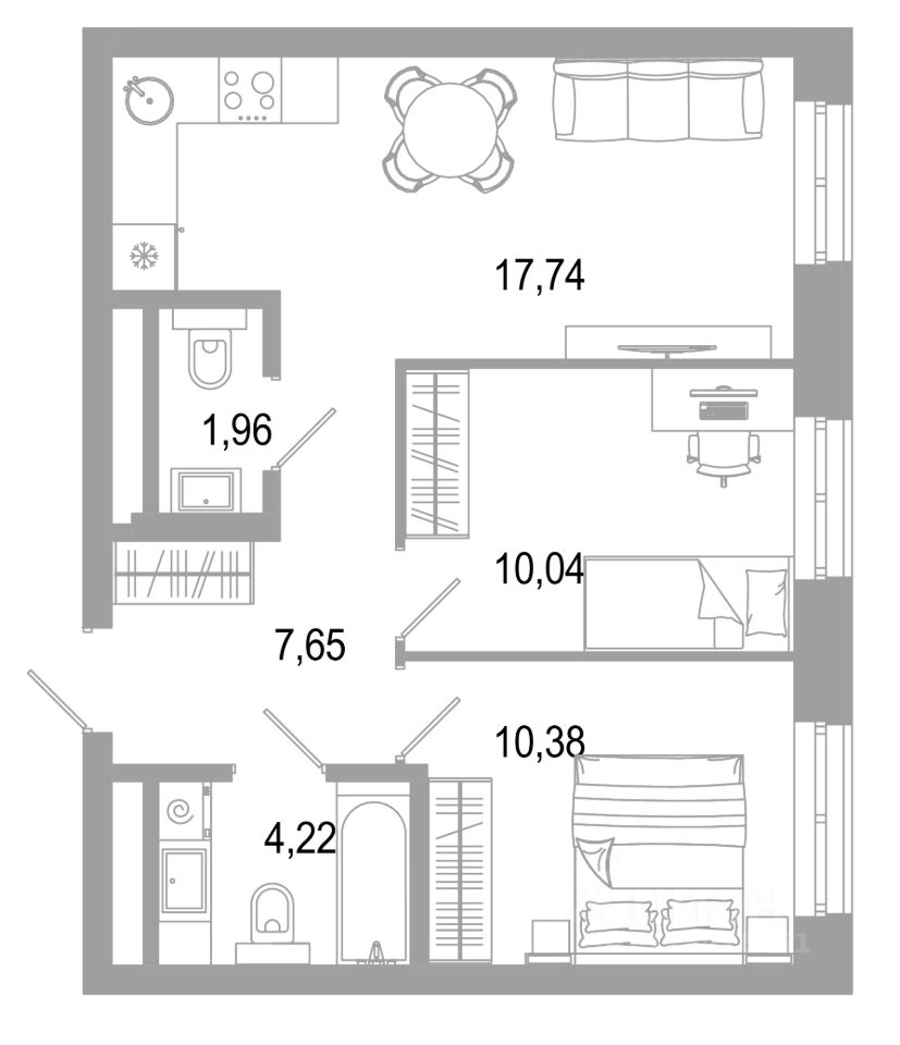 74 м² · Этаж 17 из 31