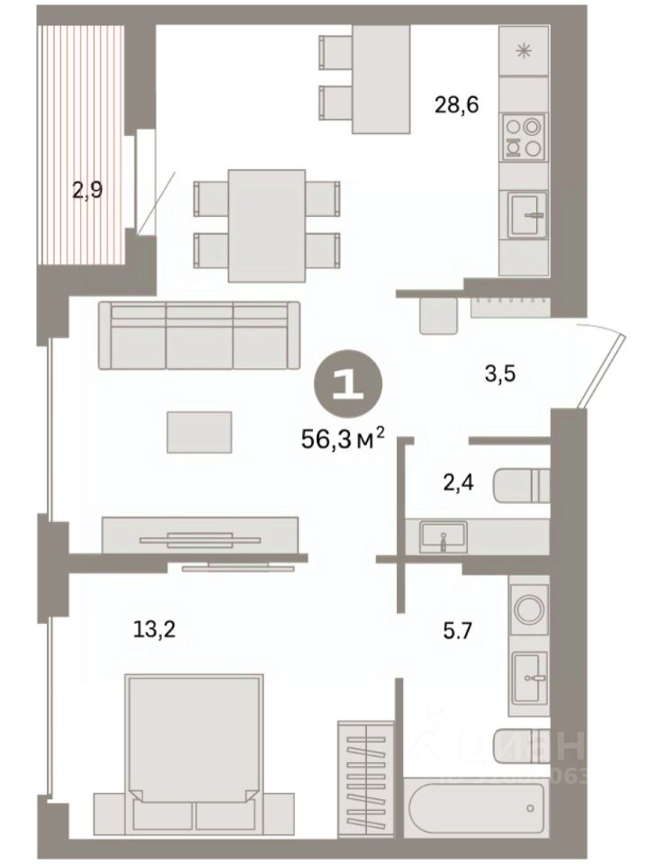 56 м² · Этаж 9 из 9