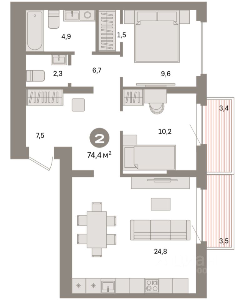 74 м² · Этаж 9 из 31