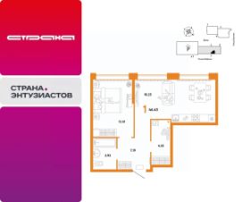 Новая квартира в ЖК ''Страна.Энтузиастов'' напрямую от федерального застройщика ''Страна Девелопмент''.Продается 1комнатная квартира на 7 этаже от застройщика Страна Девелопмент. Площадь квартиры 46,43 кв. м.ЖК ''Страна.Энтузиастов''Жилой комплекс ''Страна.Энтузиастов'' — это уютный квартал на севере Екатеринбурга, в центре Эльмаша. Здесь органично соединяются природа и умные технологии. Главной точкой притяжения станет ''зелёная'' городская гостиная, которая объединит жителей района. А значимой социальной особенностью проекта выступит муниципальный детсад на 100 мест.Преимущества•Городская гостиная для отдыха жителей и гостей — мы вдохновились энергией народной стройки и огромным желанием сделать свой дом лучше и уютнее. Ведь в середине ХХ века на Эльмаше кипела заводская жизнь, лился металл, инженеры и рабочие.•У каждого дома свой приватный двор окружен ''зеленью'', которая будет цвести весь год. Двор мы разделили на несколько зон: для детей младшего и среднего возраста, релакс пространство с гамаками и подвесными креслами, спортивная зона с воркаут и настольным теннисом.•На первых этажах находятся торговые и офисные помещения. В них располагаются полезные сервисы для жителей: рестораны, магазины, пекарни, кофейни, аптеки, салоны красоты и пункты выдачи заказов. Для каждого помещения спроектирован отдельный вход, витражное остекление и место под вывеску.ОтделкаКвартиры сдаются с предчистовой отделкой: произведена разводка электричества и отопления, выполнена стяжка пола, стены выровнены ''под маяк'', установлены радиаторы. Дизайнерская отделкаПри покупке квартиры в ЖК ''Страна.Энтузиастов'' можно включить стоимость ремонта в ипотеку. 4 стиля отделки ванной и 5 стилей отделки комнат на выбор.Кухня от застройщика Одна из удобных опций от Страны — приобретение кухни в ипотеку при покупке опции ''Ремонт''. Доступно 4 стиля на выбор: дерево, керамика, мрамор, бетон. Умный домСистема ''Умный дом'' создаст новый уровень комфорта. Управление светом с помощью голоса, получение последней информации о ситуации в квартире во время отпуска или рабочего дня — и другие преимущества включены в пакет.Способы покупкиСотрудники ''Страна Девелопмент'' будут сопровождать вас на каждом этапе сделки, помогут получить одобрение по ипотеке или снизить ежемесячный платеж.- ипотека- рассрочка- с использованием материнского капитала -100% оплата наличными