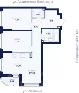 2-к, Рябинина, 1 Показать на карте