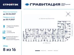 Удачные решенияНовый квартал благоустроенной жизни ''Гравитация'' мы разместили в периметре улиц Рябинина и Академика Ландау. У квартала 5 этапов строительства, а всю работу мы завершим к 2030 году.Авторы проекта гармонично совместили в оформлении природные элементы и современный дизайн. Волнообразные очертания на стенах вдохновлены силой ветра и движением воды. Скруглённые углы подчеркивают элегантный силуэт, а контрастная палитра акцентов и контурная подсветка верхних этажей создают выразительный архитектурный образ.Первый этап строительства:— Секция 1.1 — 1 подъезд 26 этажей— Секция 1.2 — 2 подъезда 16 этажей— Секция 1.3 — 1 подъезд 12 этажейЗдесь всё и сразуГравитация — уютный и обособленный, и в то же время открытый и просторный квартал. Всё рядом: супермаркеты и парки, кино и рестораны, школы и сады. В нескольких шагах набережная реки Патрушихи.В квартале построят муниципальный детский сад на 200 мест, а на 5 этапе строительства мы возведём 6-уровневый надземный паркинг на 250 машин. На первых этажах домов для вас будет работать торговая галерея с магазинами, кафе и привычными бытовыми сервисами.В 1 этапе строительства 631 квартира.Своя вселеннаяРазвитый Академический район удобен и молодым семьям, и школьникам, и состоявшимся профессионалам. Рядом большой Преображенский парк с озером и Юго-Западный лесопарк с Тропой здоровья.— 3 минуты до Гипер Ленты— 10 минут на машине до ТРЦ ''Академический'', 15 минут до ЕКАД, 25 до центра— 6 школ и 6 детских садов— Спортивные комплексы и клубы Wake up, Bright Fit и ЮностьБогатые возможностиВ квартале два просторных закрытых двора общей площадью 1,4 гектара. Один двор объединяет 1 и 2 этапы строительства, другой — 3, 4 и 5 этапы. Между дворами — камерная прогулочная аллея для неспешных вечеров или полуденного отдыха.Во дворе первого этапа — зелёные участки из хвойных деревьев, акцентных кустарников и травянистых многолетников, а также сеть дорожек, детская площадка с песочницей, аттракционами и геопластикой, настольный теннис и зона для зарядки.А для комфорта и безопасности — вечернее освещение, охрана и постоянное видеонаблюдение.Пространство с заботойВ просторных светлых лобби Гравитации — интеллигентный дизайн, помещения для колясок, высокие витражи и комфортная мебель. Выходы сквозные, на улицу и во двор. Лифты грузоподъёмностью 1000 и 450 кг.Мы подготовили для вас 44 уникальных варианта продуманных планировок, в том числе с кухнями-гостиными, гардеробными и мастер-спальнями. Здесь нет бесполезных зон, зато есть где посидеть в семейном кругу и разместить всё для удобства и комфорта.Современные технологииМы позаботились о достойной чистовой отделке, чтобы вы могли уделить время главному.— Виниловые обои на флизелиновой основе, окрашенные стены в санузлах и на лоджиях— Натяжные потолки везде, кроме лоджий, там — окрашенные— Прочный влагостойкий ламинат и керамическая плитка— Межкомнатные двери светлых тонов и сейф-дверь на входе— Эргономичное размещение розеток и выключателей