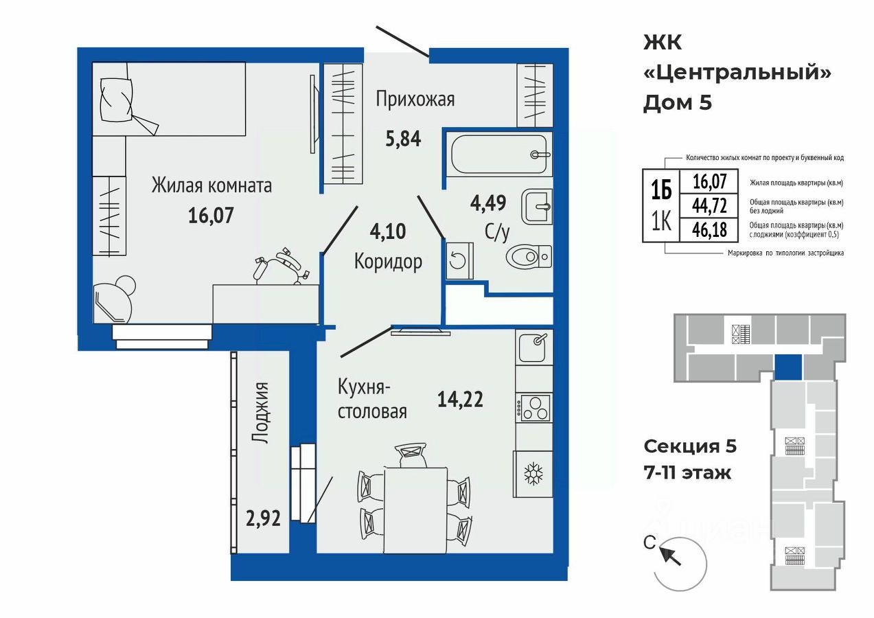 46 м² · Этаж 10 из 16