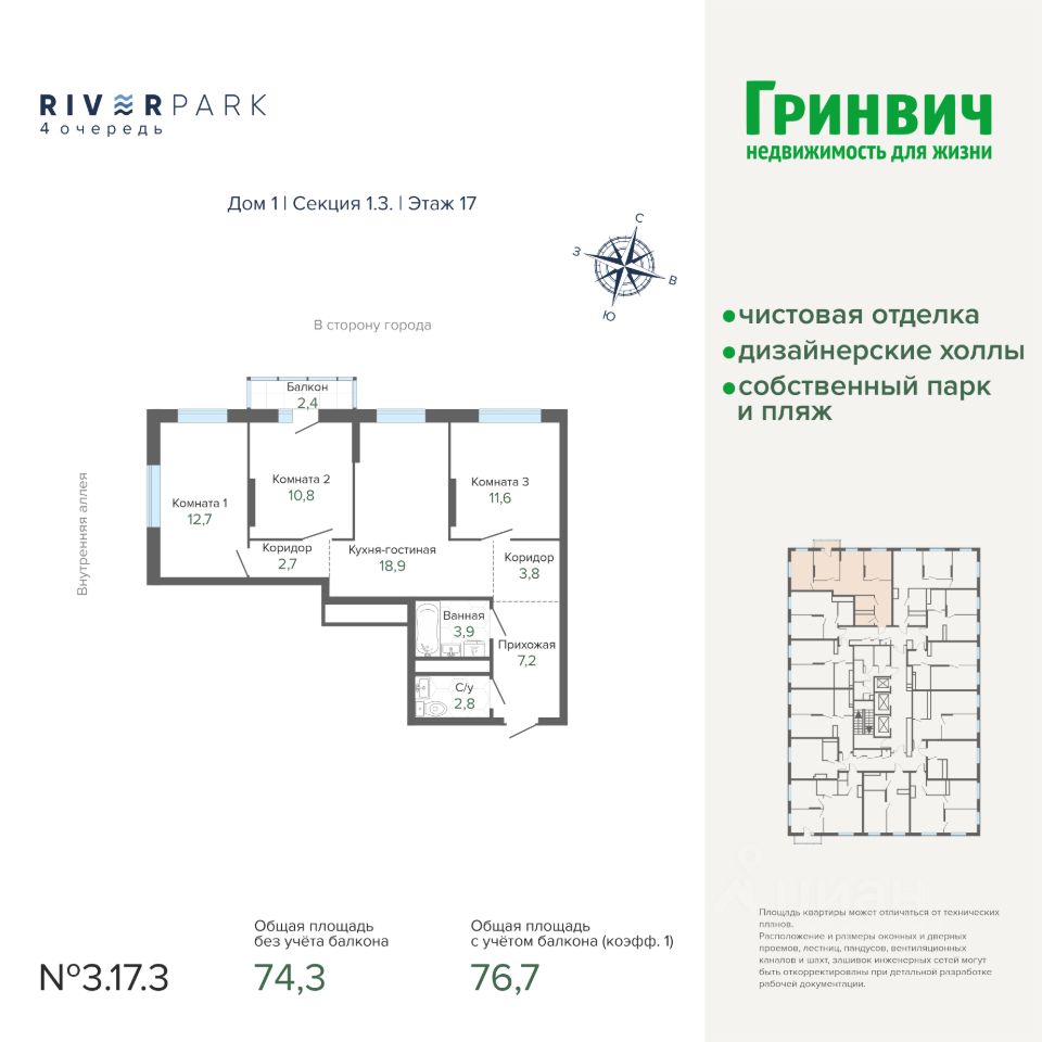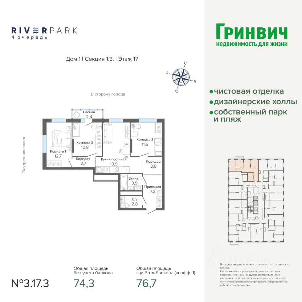76 м² · Этаж 17 из 25