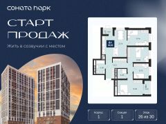 Просторная четырехкомнатная квартира с предчистовой отделкой в ЖК ''Соната Парк'' на 26 этаже. Общая площадь: 96.44 кв.м., жилая: 49.79 кв.м., площадь просторной кухни-столовой: 23.19 кв.м. Квартира угловая, идеально подойдет любителям тишины и панорамных видов. В квартире две лоджии, два совмещенных санузла. Высота потолков 2.72 м. Дом монолитный, двухподъездный, переменной этажности, от 23 до 30 этажей. Квартира находится в 1-й секции высотой 30 этажей в корпусе 1. На этаже 10 квартир. В подъезде 2 пассажирских и 2 грузовых лифта. Окончание строительства - 4 квартал 2028 года. Оформление сделки по договору долевого участия. ЖК ''Соната Парк'' расположен в новом городском кластере ''Аллея Романтиков'' на Юго-Западе Екатеринбурга. Это район улиц Волгоградская Советских женщин Шаумяна Амудсена. Аллея объединяет разные кварталы застройщиков этой территории в единое целое. Чистые линии, интеллектуальная элегантность фасадов, игра света и тени это партитура, написанная архитектором. Благоустройство жилого комплекса это синтез искусства и природы. Поющие музыкальные инсталляции и поэтический променад. Оркестр растений: сирень, гортензии и яблони, чья цветущая палитра сменяется в течение года. Жизнь с готовой инфраструктурой Развитая транспортная доступность и социальная среда: уже сегодня рядом с домом детские сады, школы, парковые зоны, супермаркеты и рестораны в шаговой доступности. Технологии безопасности Для спокойствия жителей создана интеллектуальная система безопасности. Круглосуточный визуальный контроль обеспечивают профессиональная служба охраны, постоянно присутствующая на территории, и ситуационный центр. Система видеонаблюдения охватывает каждый уголок комплекса, исключая ''слепые'' зоны. Чёткое зонирование и навигация дополняют картину полного порядка. Дизайнерские подъезды Стилистика подъездов продолжает концепцию ''Соната Парка'', вдохновлённого музыкальной симфонией: сдержанный, но при этом впечатляющий дизайн соседствует с удобством и функциональностью. В подъезде вас встречает музыка, создавая особую атмосферу с первых секунд. Светлые и стильные входные группы с панорамным остеклением наполняют пространство светом, добавляя ему современной эстетики и ощущения безопасности. Аллея Романтиков Проект органично вписан в масштабный пешеходный кластер ''Аллея Романтиков'' — уникальное общегородское пространство, которое уже сегодня называют будущей альтернативой главным прогулочным улицам города. Это многофункциональный бульвар протяжённостью 1 километр, где всё создано для вдохновения и отдыха. Это ''зелёное сердце'' территории, которое объединит кварталы разных застройщиков в единую гармоничную среду. Здесь будут назначать свидания, гулять с семьёй, встречаться с друзьями и просто наслаждаться моментом. Линейка ремонтов Ремонт с капсульной меблировкой — когда всё готово к жизни. Мы соединили качественный ремонт и продуманную меблировку в одном флаконе. Словно ''с иголочки'', новая квартира готова и обставлена