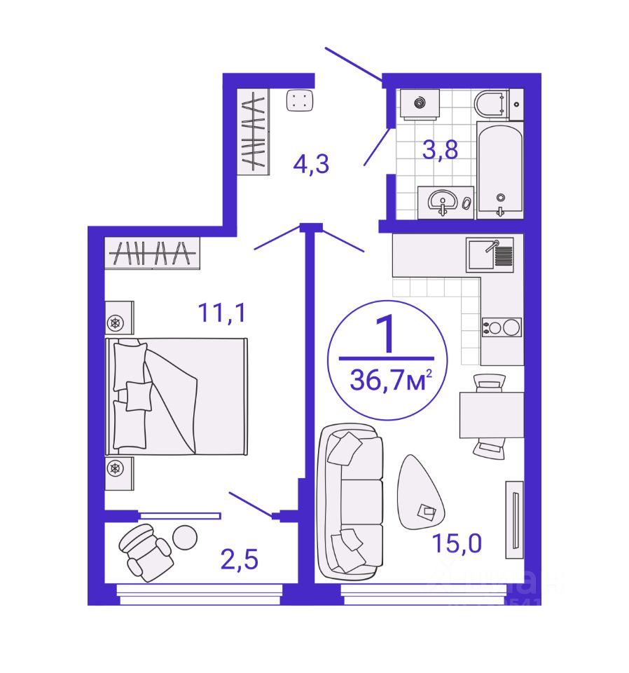 37 м² · Этаж 16 из 31