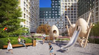 Премиум кварталы ''Маяковка'' представляют собой архитектурную композицию, сочетающую в себе высотные башни и пять дворовых блоков. Это величественное сооружение высотных башен существенно выделяется на фоне городского ландшафта, создавая привлекательный и изысканный облик района, формируя город в городе.