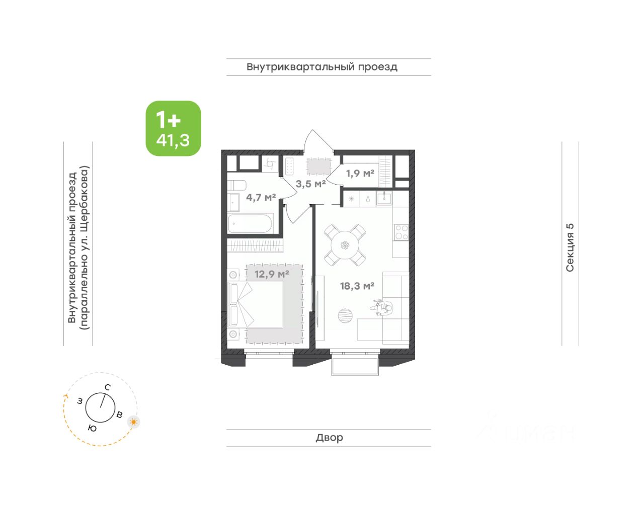 Удобство для молодой семьи Концепция ''тихий дом'': все квартиры в доме с чистовой отделкой, никаких шумных ремонтных работ с утра до вечера Светлая и просторная кухня-гостиная 20,8 м² — место, где утром приятно начинать день за чашкой кофе, а вечером собираться с друзьями. Открытая планировка создаёт ощущение свободы, а зона готовки продумана так, чтобы всё было под рукой Уютная спальня 12,8 м² с видом на город создаёт уютный уголок уединения и спокойствия Современный санузел 4,7 м² позволяет разместить всё необходимое для утреннего бодрящего душа или расслабляющей вечерней ванны, а также содержит место под стиральную машину В прихожей 4,6 м² с системой хранения каждая вещь найдёт своё место Панорамная лоджия 4,1 м² — ваш личный уголок для отдыха, где можно наслаждаться свежим воздухом, не выходя из дома