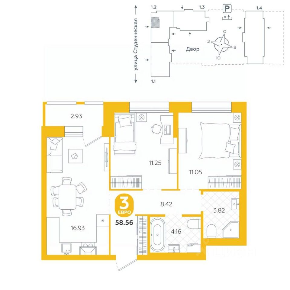 58 м² · Этаж 7 из 9