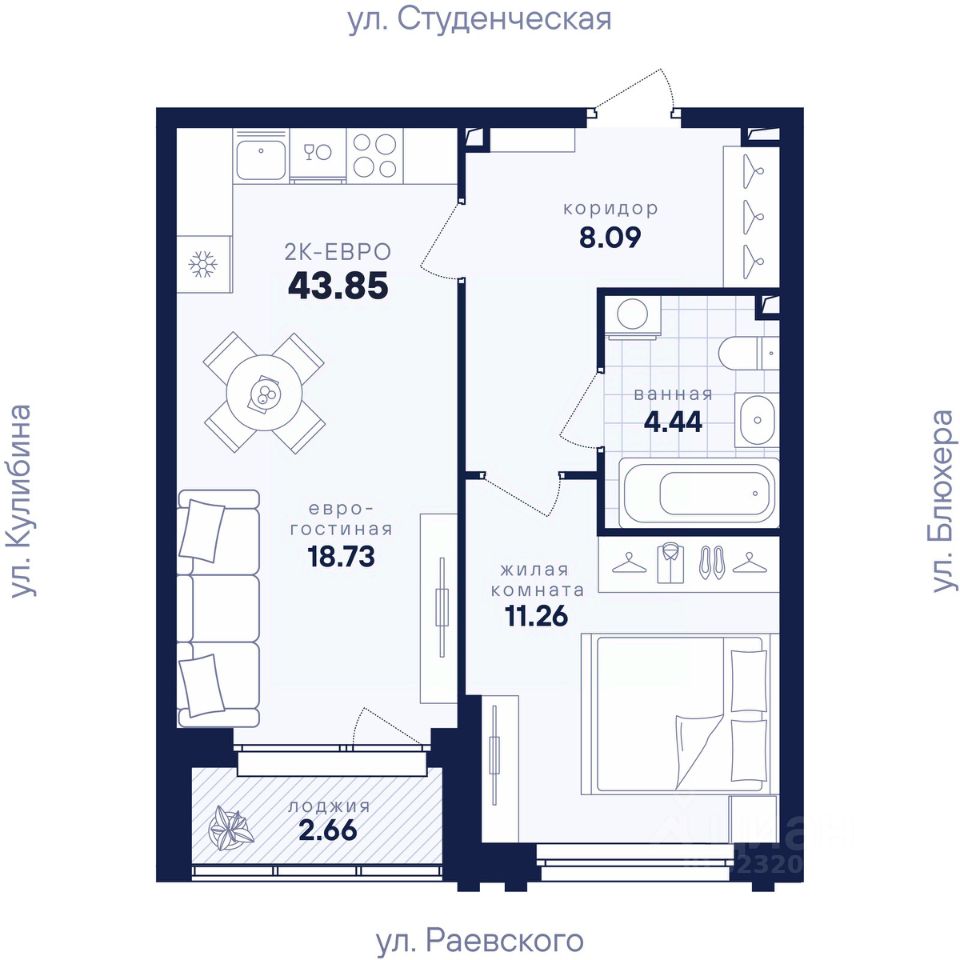 43 м² · Этаж 11 из 25