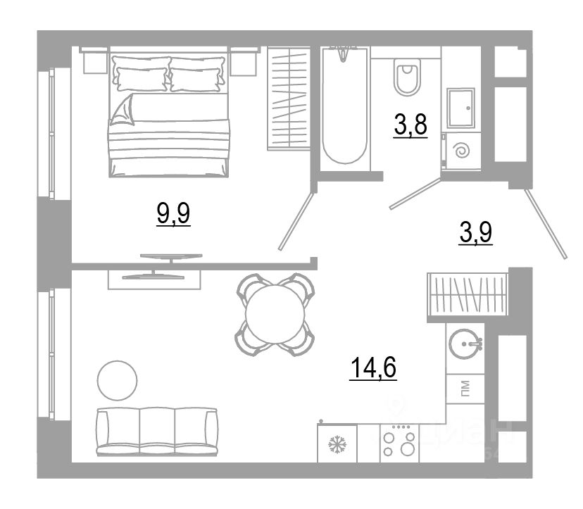 43 м² · Этаж 8 из 25