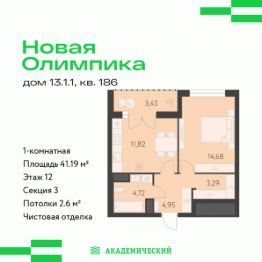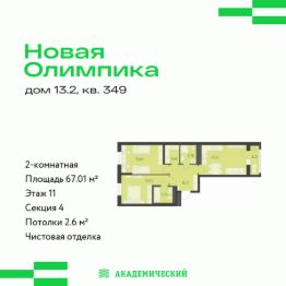Проект от основателя и главного застройщика Академического района.Расположение и инфраструктура:Квартал ''Новая Олимпика'' включает десять блоков домов, два детских сада в периметре улиц А. Парина А. Ландау А. Вавилова Матвеева.Сроки строительства квартала: 3 квартал 2024 3 квартал 2030.В числе особых преимуществ уникальная локация: напротив Преображенского парка, рядом с Дворцом Дзюдо и Академией тенниса.Развитая транспортная развязка, включающая трамвайную линию.На территории квартала планируется: видеонаблюдение 24/7, подземный паркинг с доступом на лифте, кладовые, велодорожки, многоуровневое озеленение, workout зоны для уличного фитнеса, детские игровые комплексы. На первых этажах будут располагаться торговые галереи.