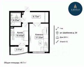 1-к, Щербакова, 20 Показать на карте