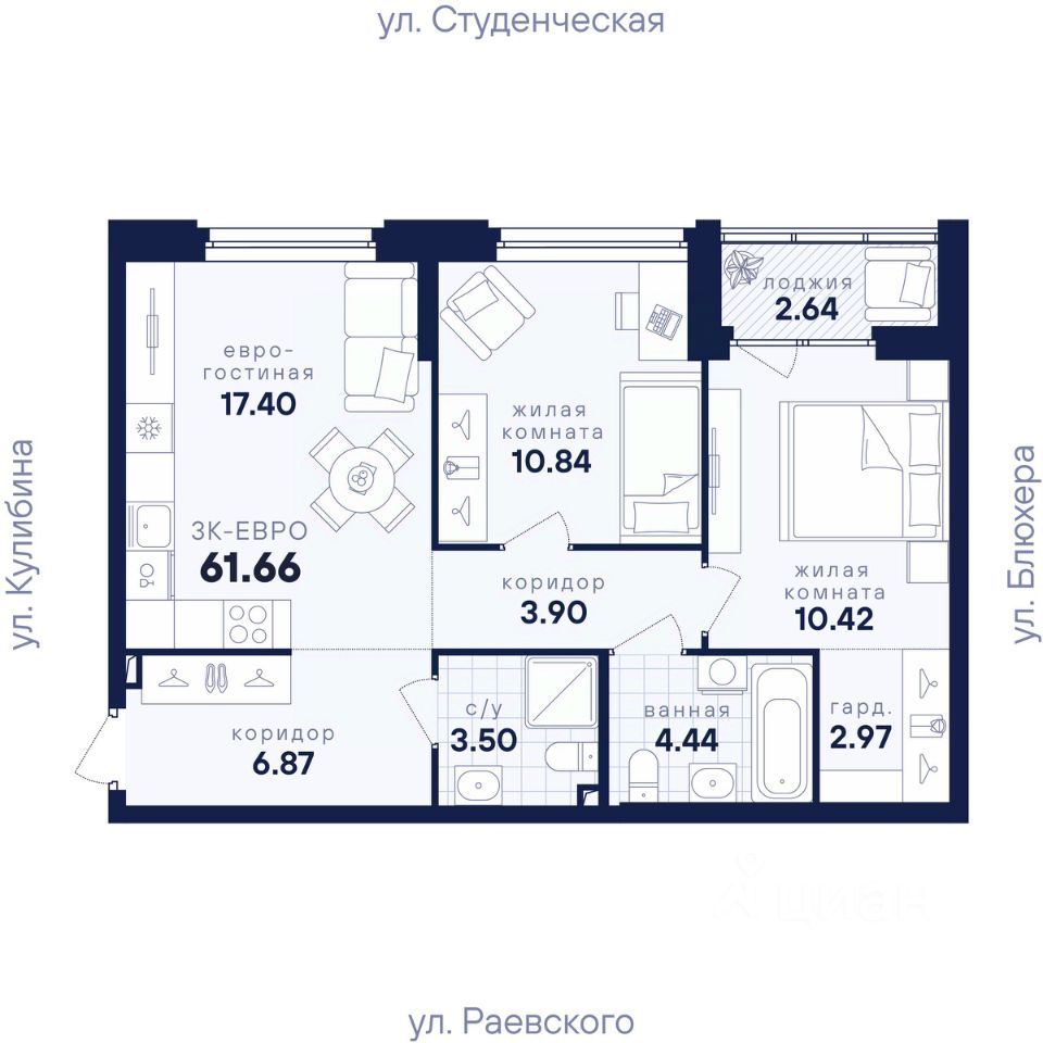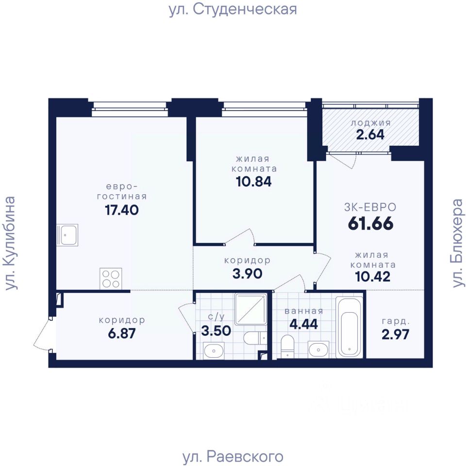 61 м² · Этаж 13 из 25