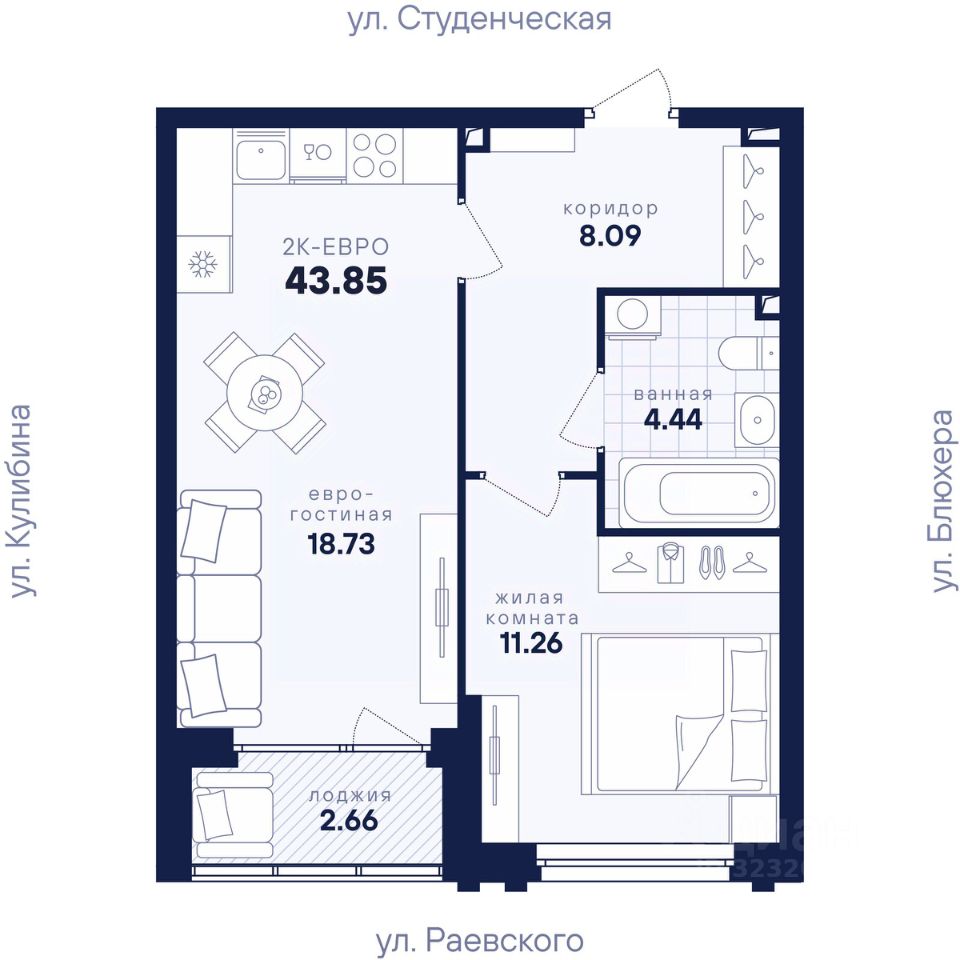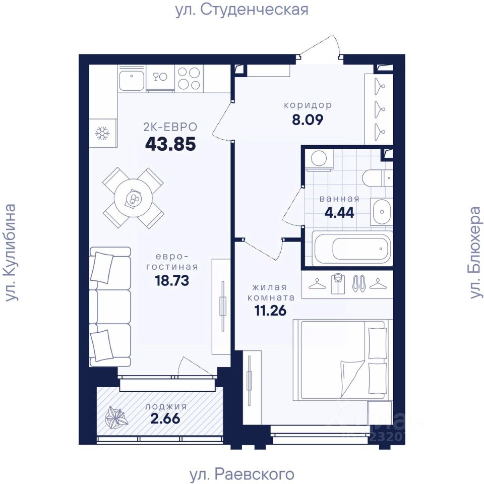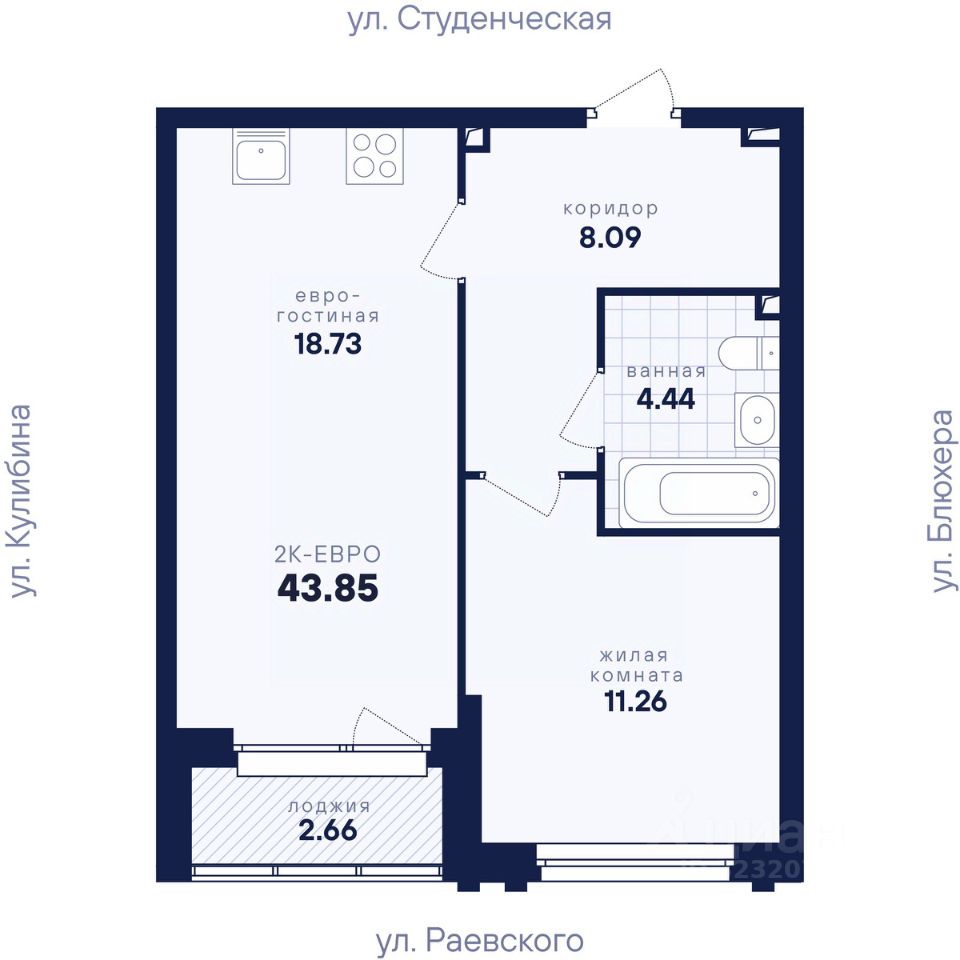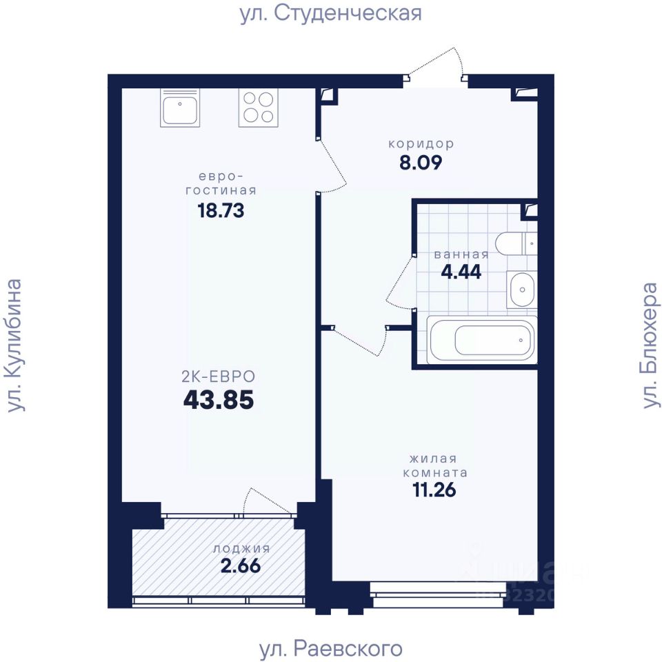 43 м² · Этаж 11 из 25