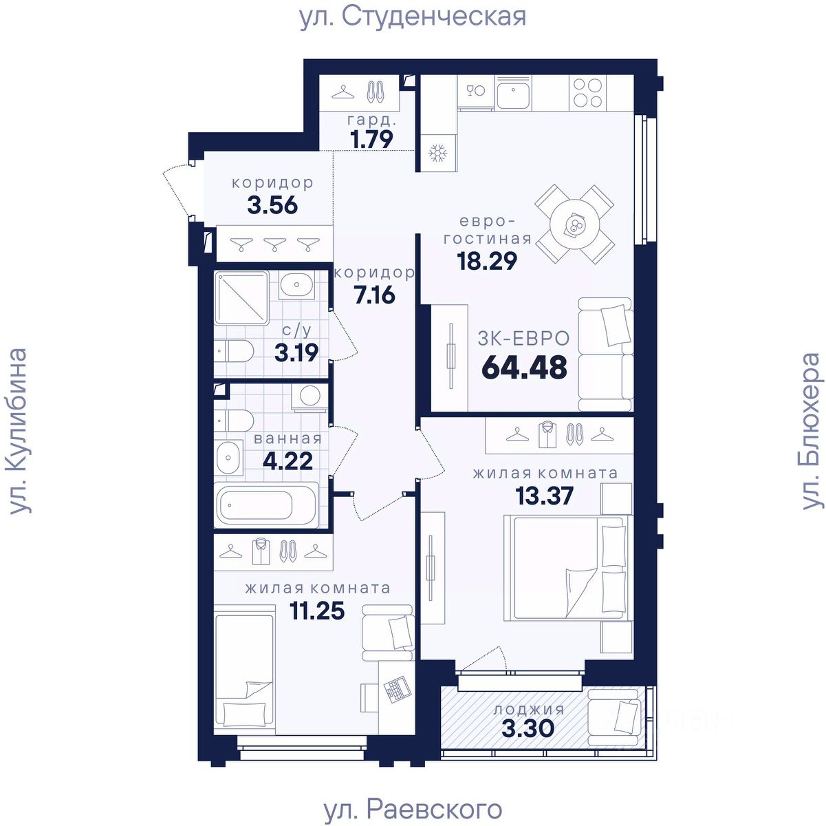 64 м² · Этаж 13 из 25