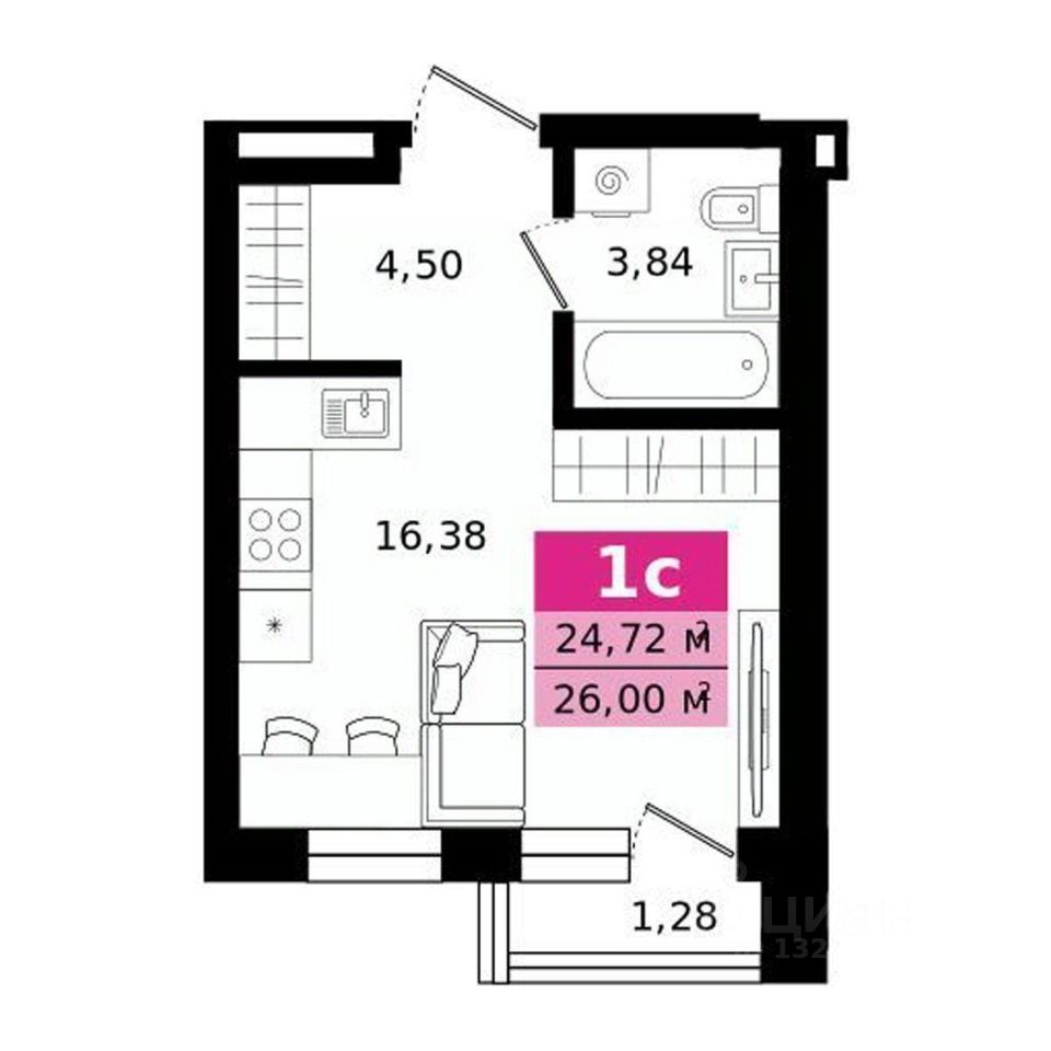 26 м² · Этаж 2 из 25