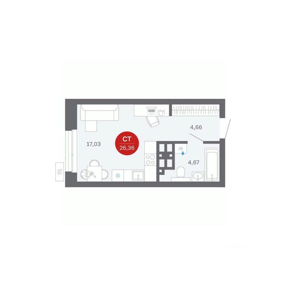 26 м² · Этаж 16 из 25