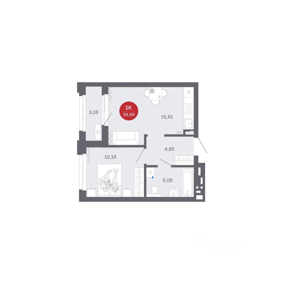 Продаётся 1-комнатная квартира в строящемся доме (Секции 1-4), срок сдачи: II-кв. 2027, общей площадью 38.86 кв.м., на 2 этаже. Новый жилой комплекс ''Сибирская калина'' от застройщика ''СЗ Атлант-Екатеринбург'' расположен по адресу: г. Екатеринбург, улица Титова.