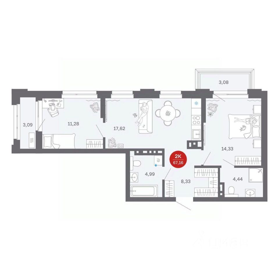 67 м² · Этаж 6 из 9
