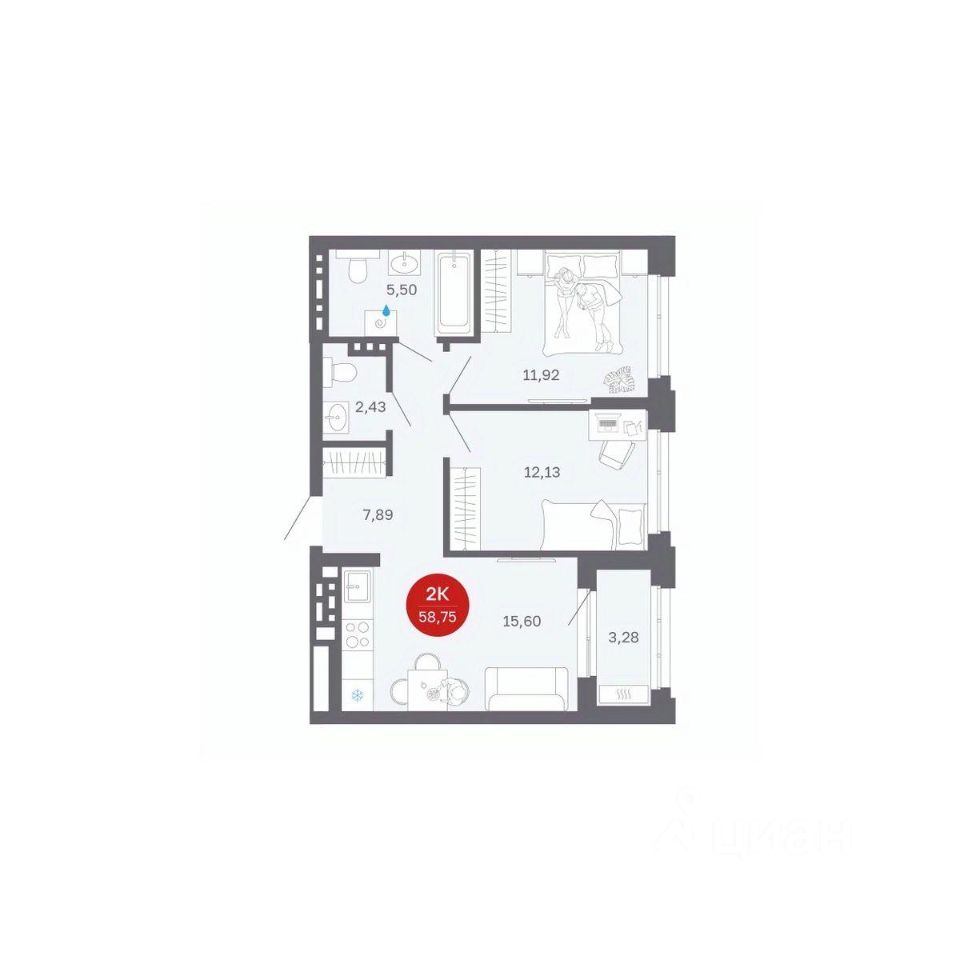 58 м² · Этаж 7 из 9