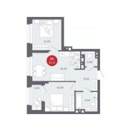 Продаётся 2-комнатная квартира в строящемся доме (Секции 1-4), срок сдачи: II-кв. 2027, общей площадью 59.52 кв.м., на 20 этаже. Новый жилой комплекс ''Сибирская калина'' от застройщика ''СЗ Атлант-Екатеринбург'' расположен по адресу: г. Екатеринбург, улица Титова.