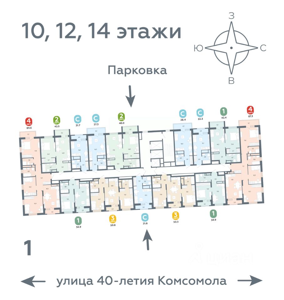 87 м² · Этаж 14 из 16