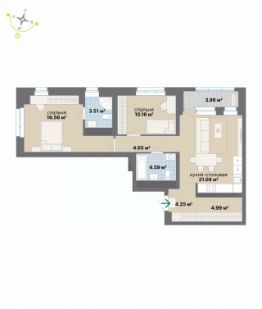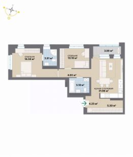Квартира 482 в подъезде 1. Квартал, в котором рациональность соединяется с творчеством, а архитектурная выразительность — с современными технологиями комфорта. Эффективные планировки, двор-сад без машин, двухуровневая подземная парковка и коммерческие помещения на первых этажах создают функциональную основу комплекса. Статус подчеркивает парадный вестибюль с ресепшн, а художественные акценты в общественных пространствах формируют атмосферу, вдохновляющую на новые идеи.
