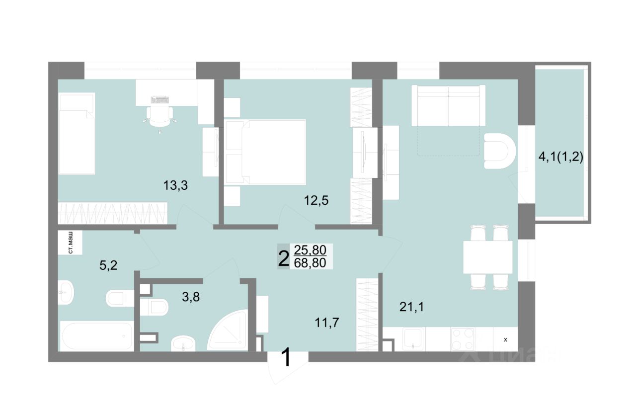 68 м² · Этаж 2 из 25