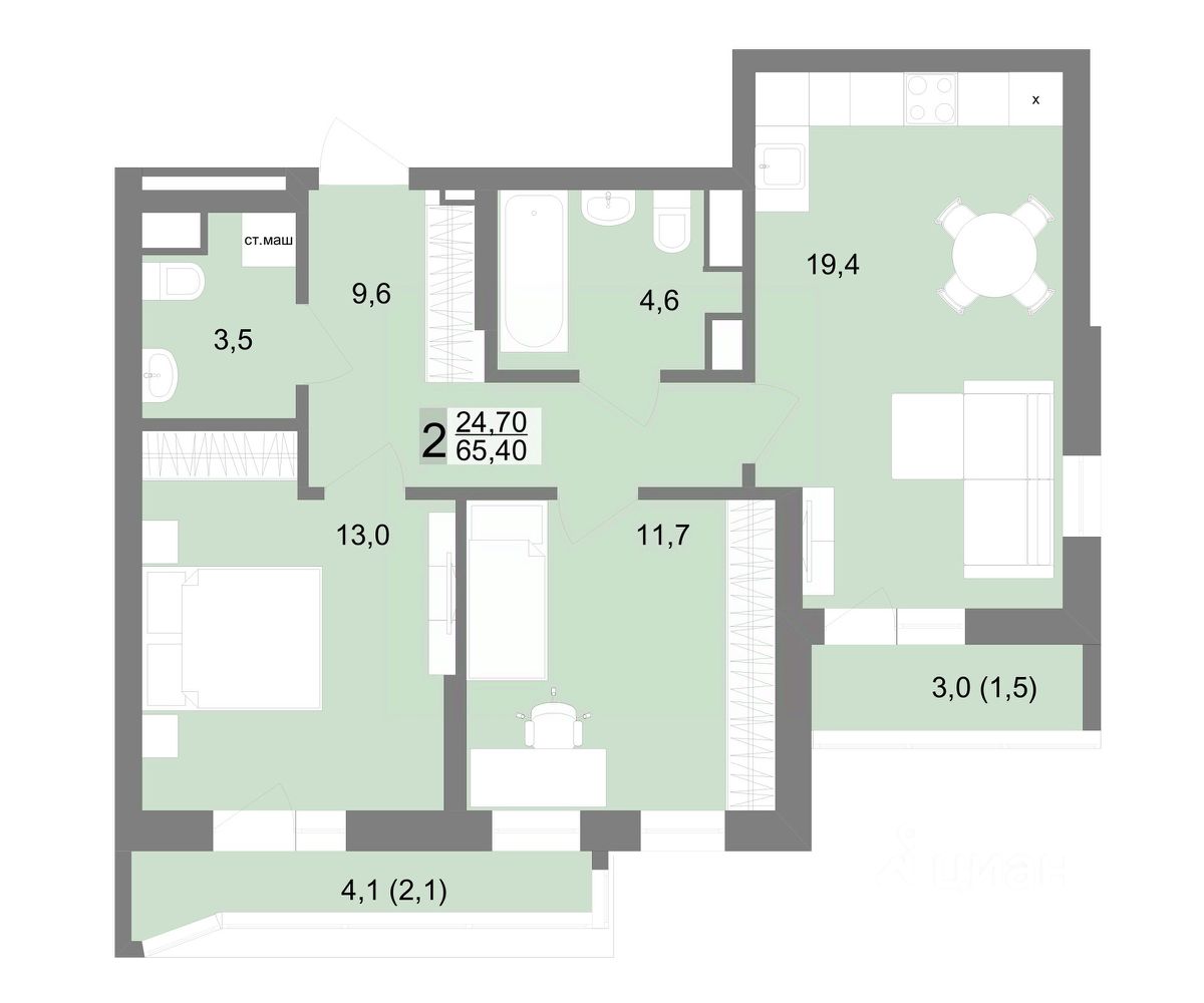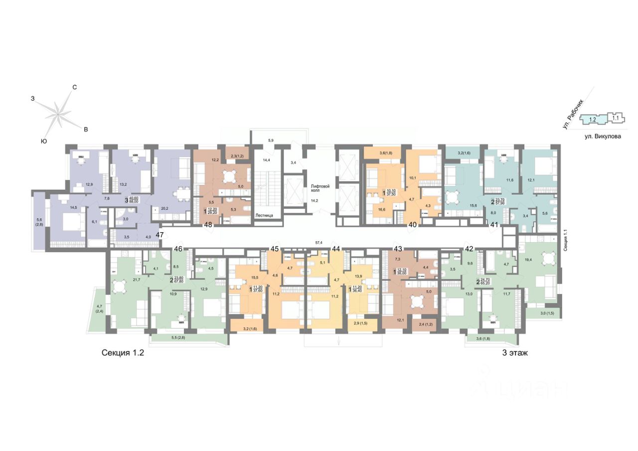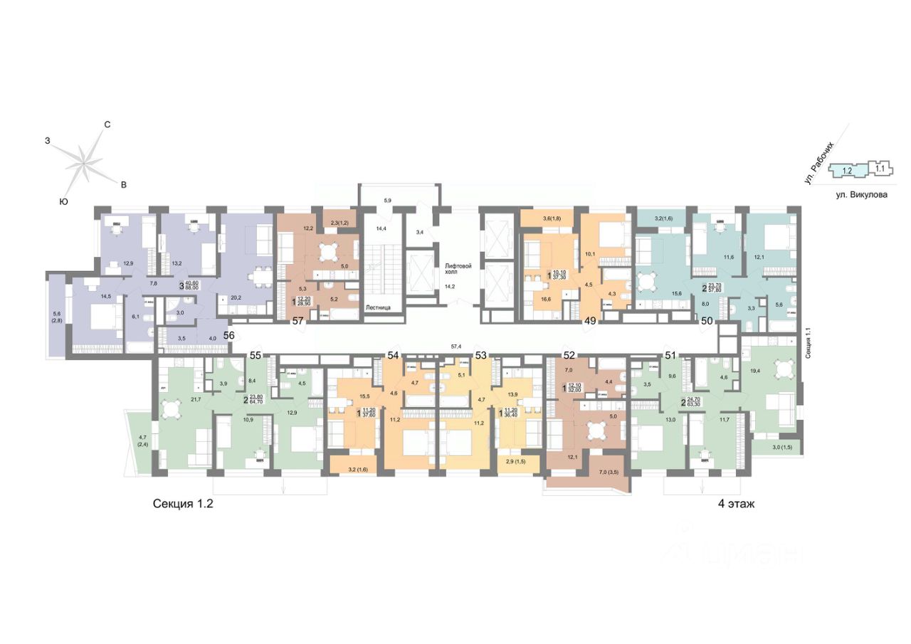 57 м² · Этаж 6 из 25