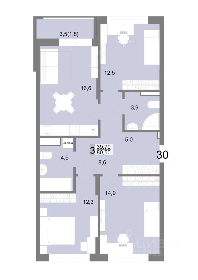 30 м² · Этаж 3 из 25