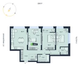 Продаётся 2-комнатная квартира в строящемся доме (Дом 8 (17А-17В)), срок сдачи: III кв. 2027, общей площадью 61.96 кв.м., на 20 этаже. В жилом квартале есть собственный выход в ЦПКиО им. Маяковского для утренних пробежек и отдыха всей семьёй. В территорию квартала интегрирована река Исеть с обустроенной набережной. Здесь вы сможете гулять с детьми и наслаждаться видами летними вечерами.