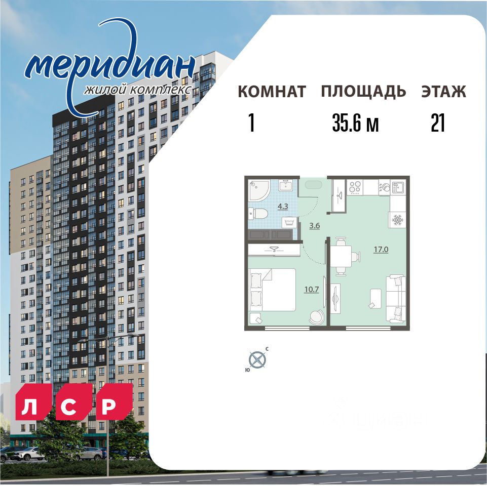Продается 1-комн. квартира с европланировкой, площадью 35.6 м2 в монолитно-кирпичной новостройке. Возможен вариант покупки с использованием ипотечных средств, есть рассрочка. Жилая площадь 10.7 м2, кухня 17 м2, чистовая отделка. Раздельных санузлов - нет, балконов - нет, лоджий - нет. Квартира располагается на 21 этаже 24-этажного дома в ЖК Меридиан. Застройщик - Специализированный застройщик ЛСР. Недвижимость-Урал, сдача дома - I квартал 2026 года, высота потолков 2.5 м. Парковка автомобилей - наземная. Инфраструктура: школа, детский сад, детские площадки, спортивные площадки, места для отдыха, супермаркет. ''Меридиан'' - уютный жилой комплекс от ''Группы ЛСР'', который расположен в активно развивающейся части Екатеринбурга - Академическом районе. За счет близости лесного массива и реки Патрушихи в локации сложилась благоприятная экологическая обстановка. В состав жилого квартала ''Меридиан'' входит шестнадцать панельных домов высотой от 8 до 25 этажей с разноцветными фасадами, а также здание образовательного центра. Новостройка расположена в юго-западной части Екатеринбурга, недалеко от ЕКАД, на границе микрорайонов Академический и Широкая речка, рядом с улицей Суходольская, по соседству с малоэтажным кварталом ''Мичуринский''. Позвоните и узнайте условия покупки прямо сейчас!