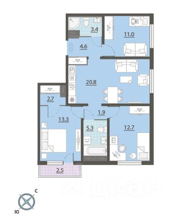 Трехкомнатные
