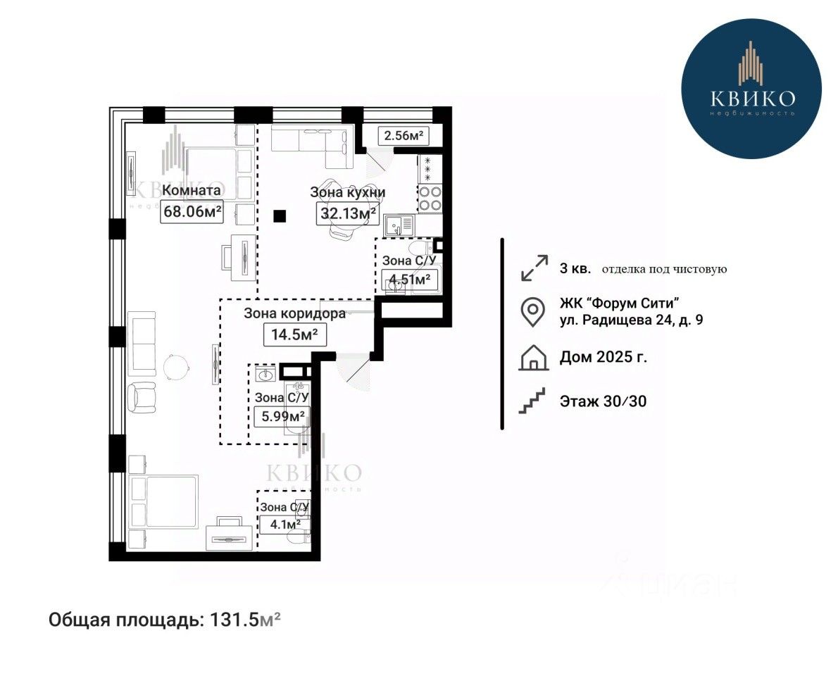 131 м² · Этаж 30 из 30