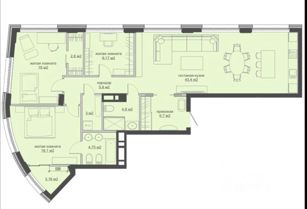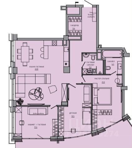 184 м² · Этаж 15 из 15