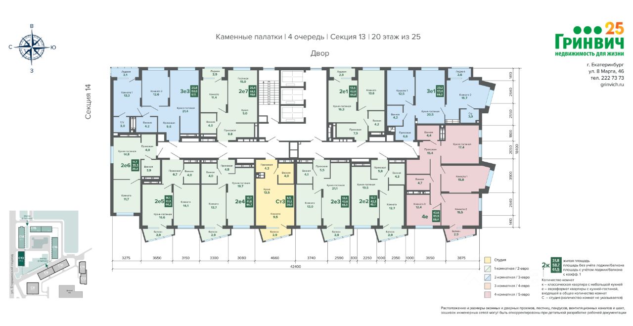 88 м² · Этаж 20 из 25