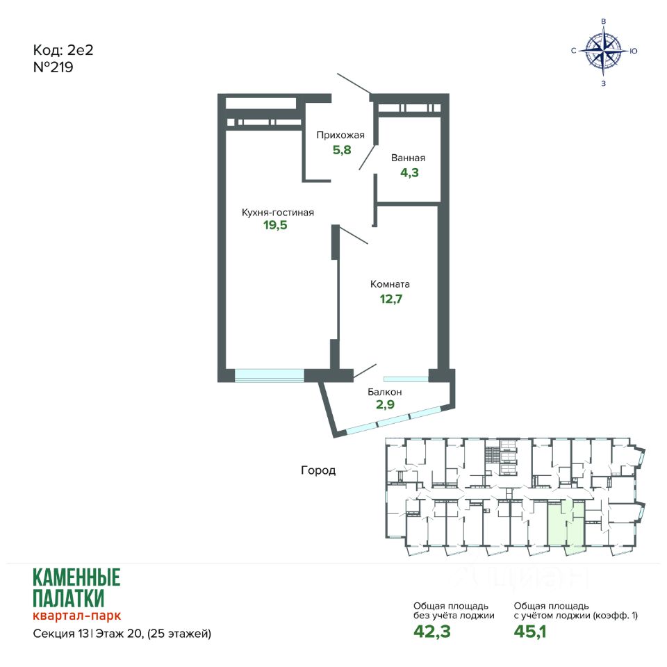 45 м² · Этаж 20 из 25