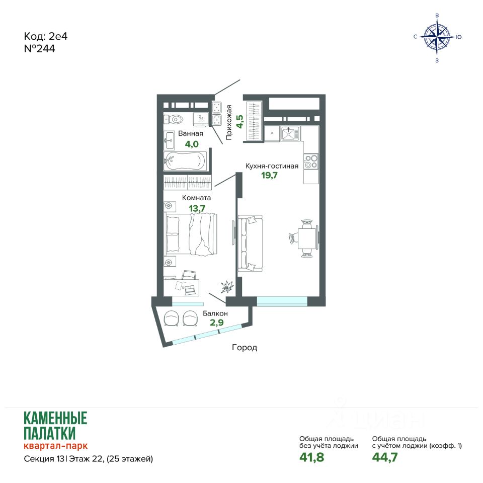 44 м² · Этаж 22 из 25