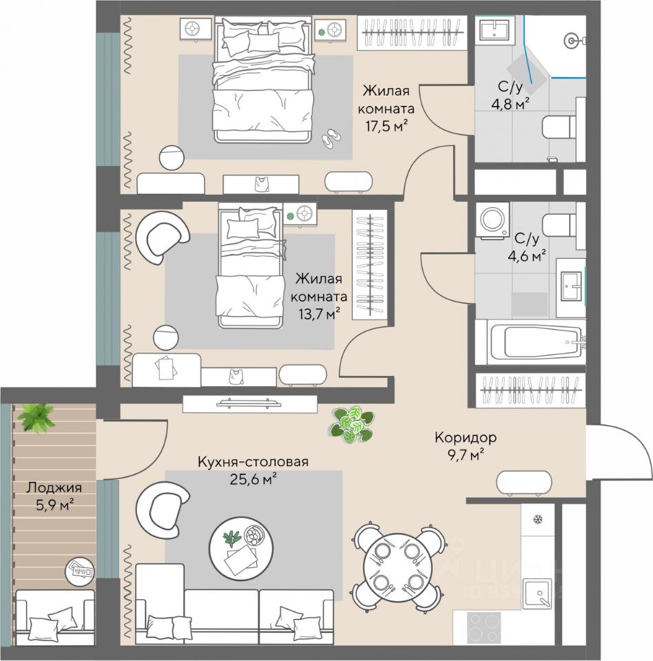 56 м² · Этаж 17 из 24