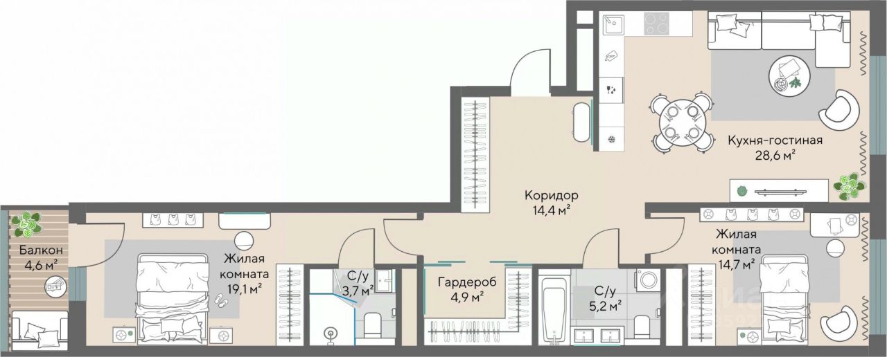114 м² · Этаж 7 из 28