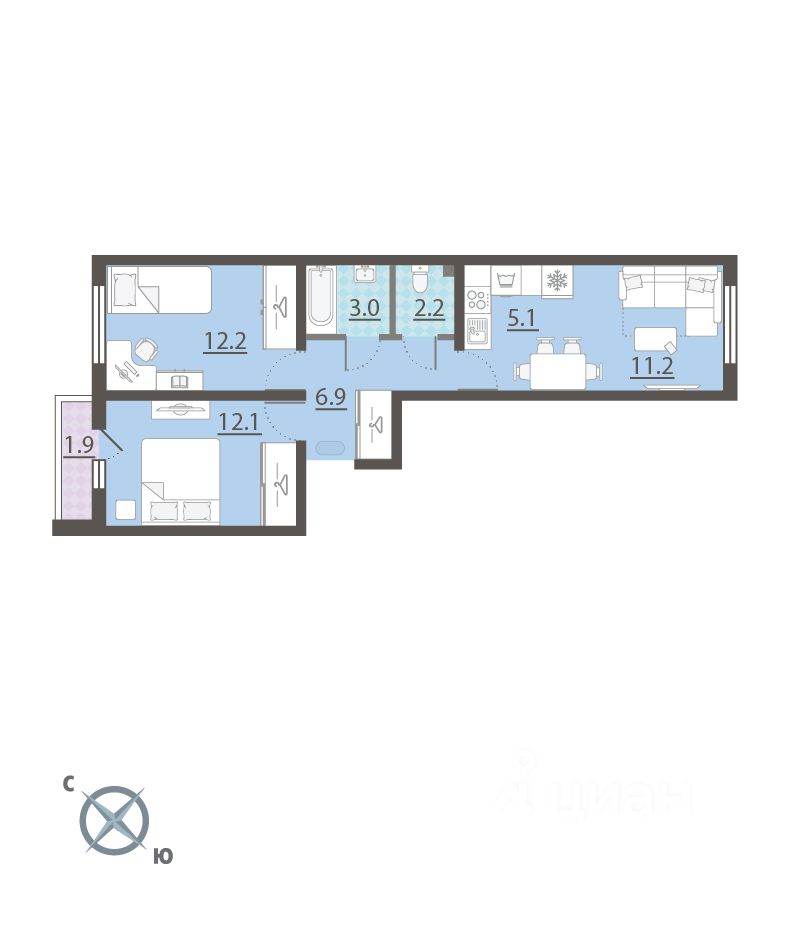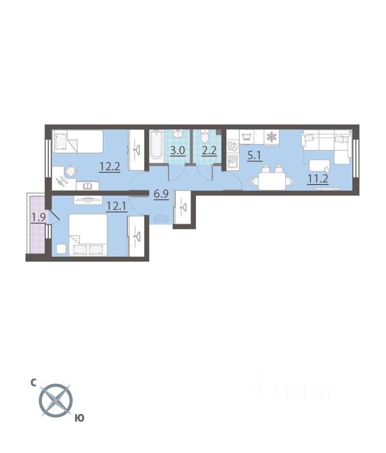Трехкомнатные