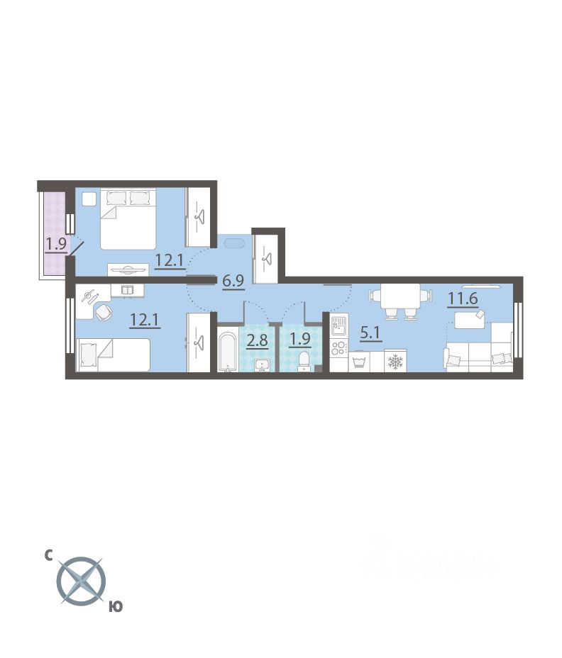 19 м² · Этаж 5 из 5