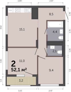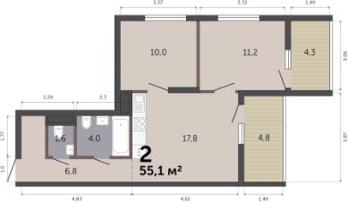 55 м2